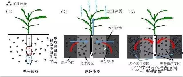 不论质流还是扩散,若要完成养分向根表的迁移,需要有水作为媒介。也就是说,肥料只有溶解在水里面才能到达根表被吸收,否则养分就变成了无效养分,无法被根系吸收。